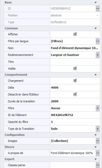 Le panneau d'éléments responsive a aussi un élément lié. Il s'agit de l'élément Fond d'éléments dynamique 100%